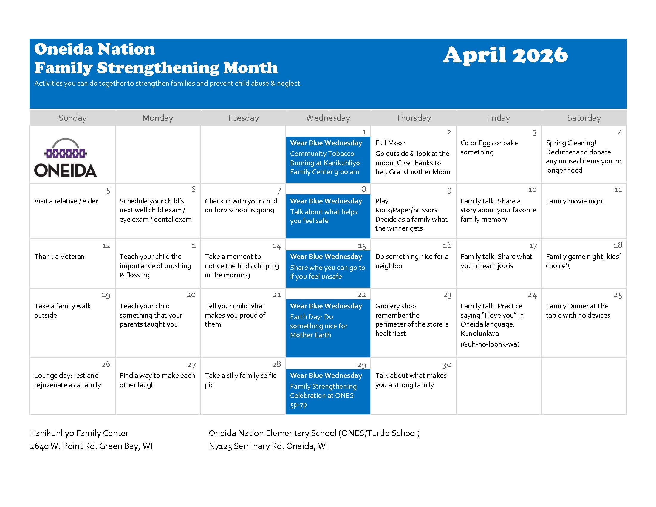 * PEC is open to all. Priority registration for Oneida families & Oneida ICW cases.