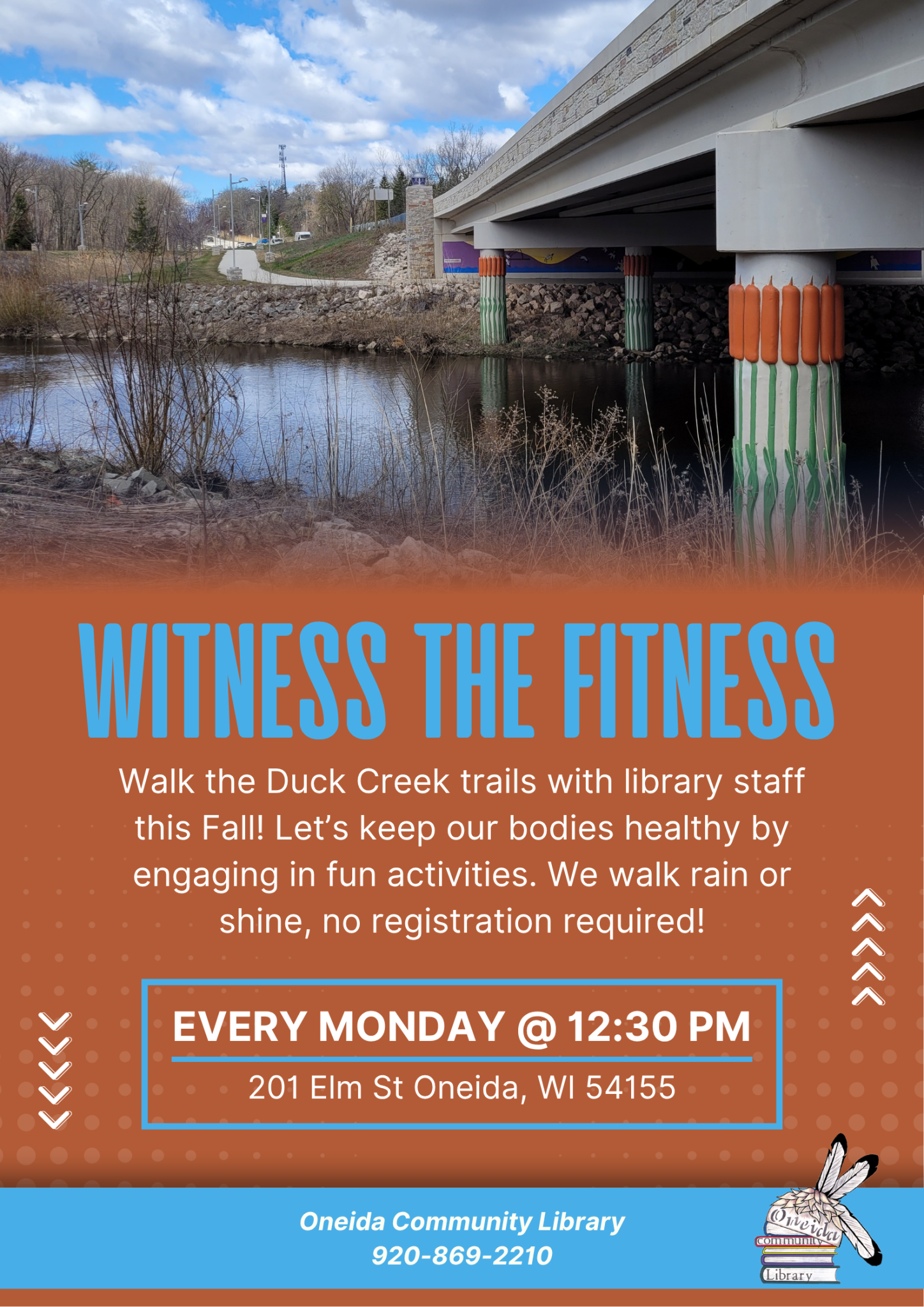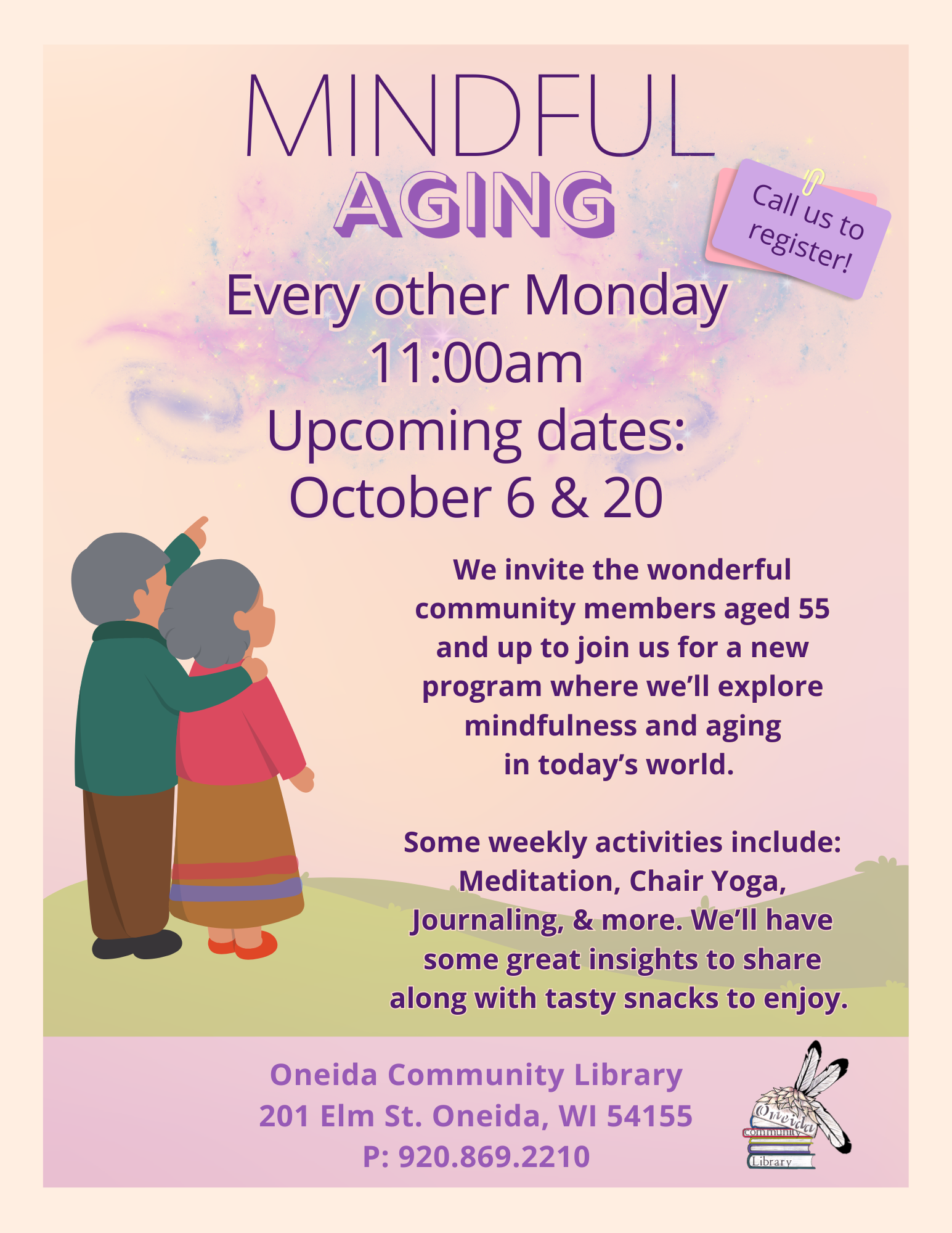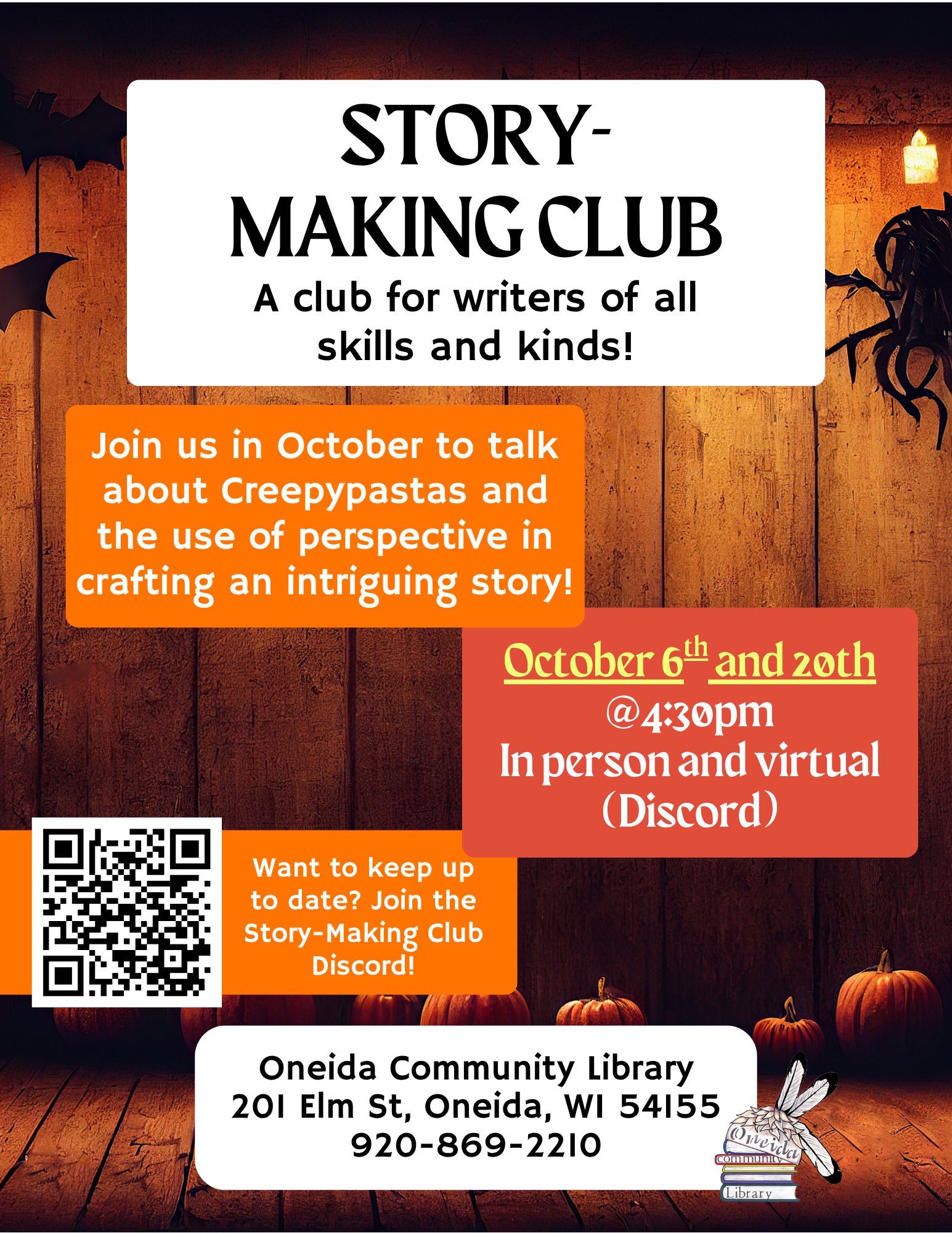 Come to the Oneida Community Library for three amazing programs on Monday! For elders, we have Mindful Aging at 11am, and then join us for a walk on the trails with Witness the Fitness at 12:30pm. Adults can come and take part in our Story-Making Club @4:30pm, where we’ll be discussing spooky stories and writing for Halloween!