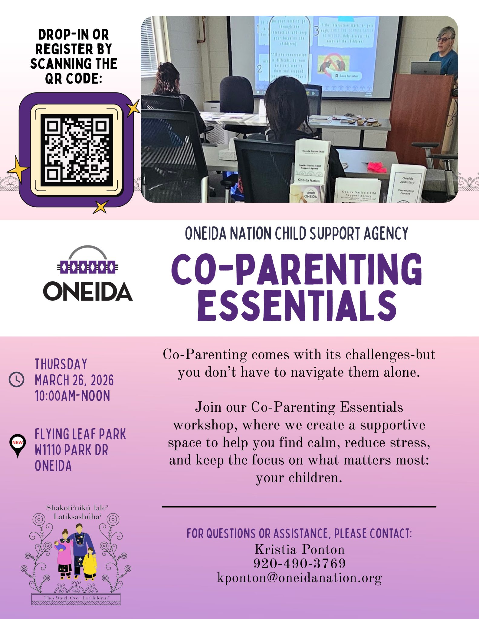 3/26 Co-Parenting Workshop being held in Flying Leaf park. Workshop begins at 10:00am, ending at 12:00pm. Register ahead or on-site.