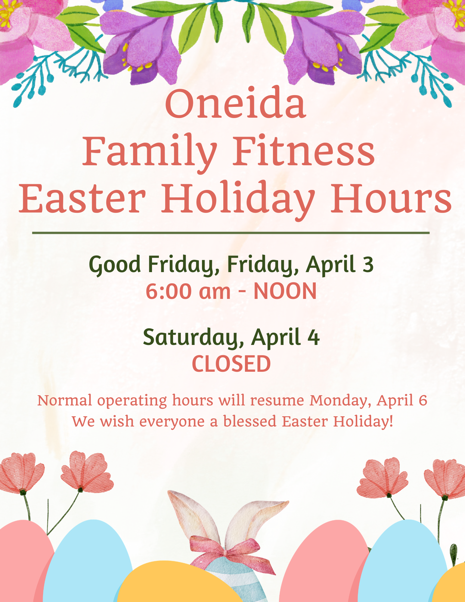 Reminder: All programs and services close at noon today in observance of Good Friday.