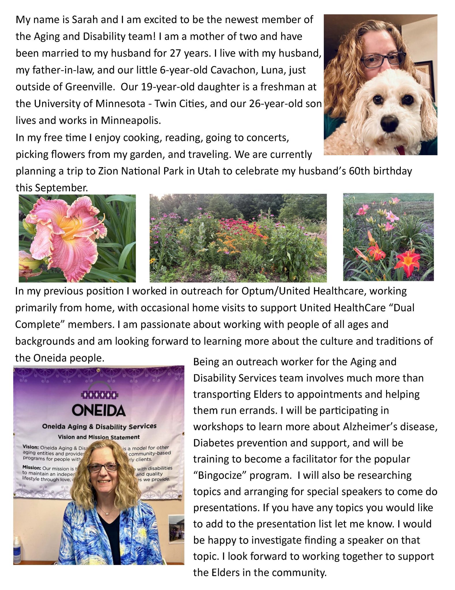 Meet Sarah Miles, new outreach worker at Oneida Aging and Disability! We are so happy to have her a part of our team.