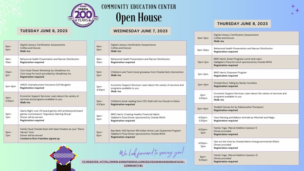 The Community Education Center is hosting an Open House June 6-8, 2023. Our Open House is an exciting opportunity for our community to come together and celebrate learning. The event will feature a variety of workshops, seminars, and activities that are designed to engage, educate, and inspire our attendees. Our event is geared toward promoting family literacy, showcasing our services, and providing a fun and interactive event for our community members.