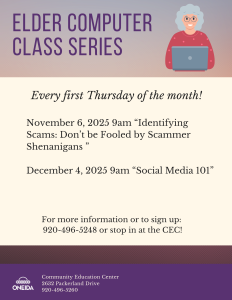 Oneida Community Education Center provides various programs and events to the Community. Follow our Facebook page for weekly updates!