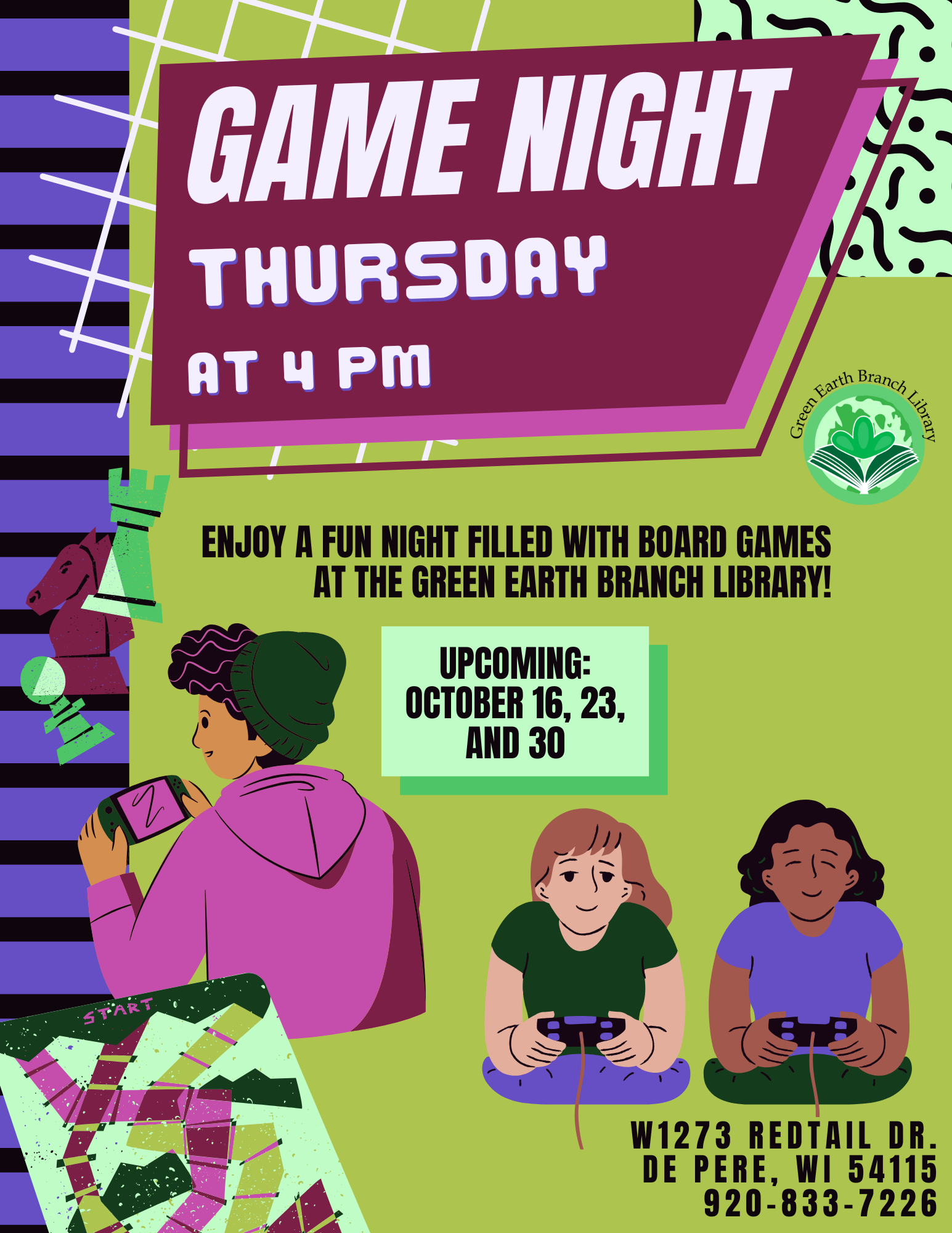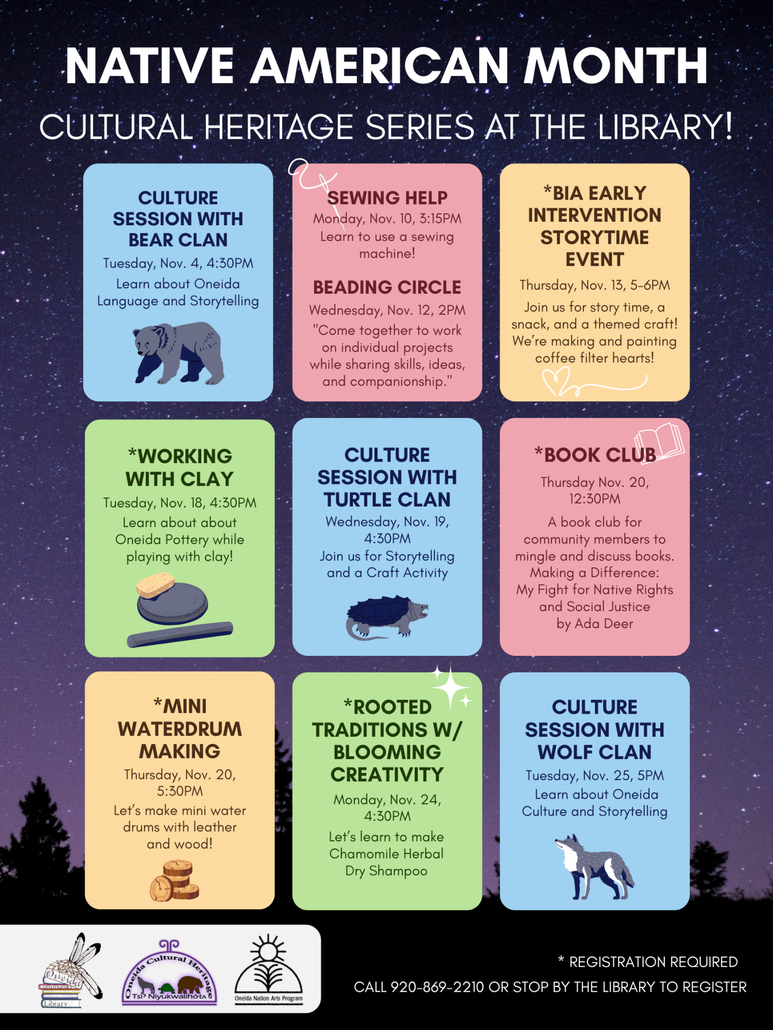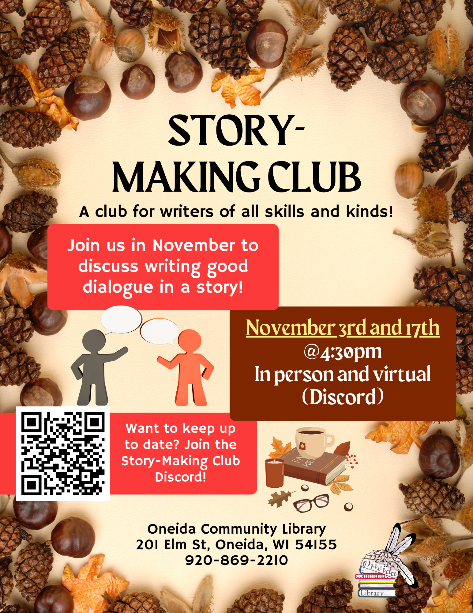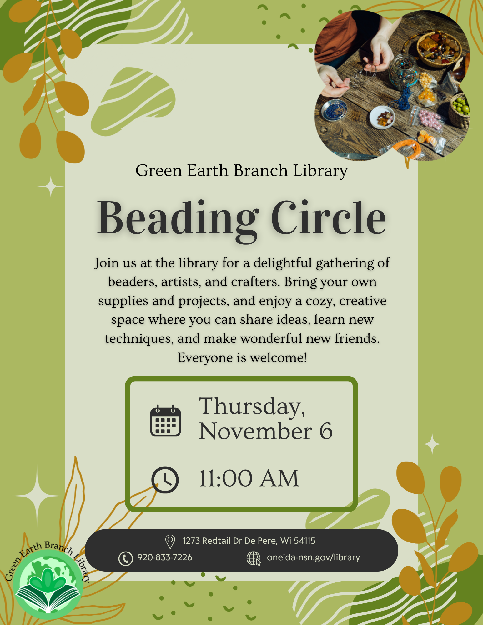 Oneida Community Library: 920-869-2210Green Earth Branch Library: 920-833-7226