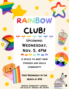 Oneida Community Library: 920-869-1299 Green Earth Branch Library: 920-833-9782