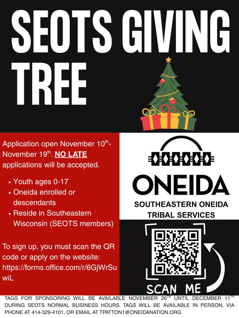 Scan the QR code or apply here: 2025 Southeastern Oneida Tribal Services Giving Tree – Fill out form