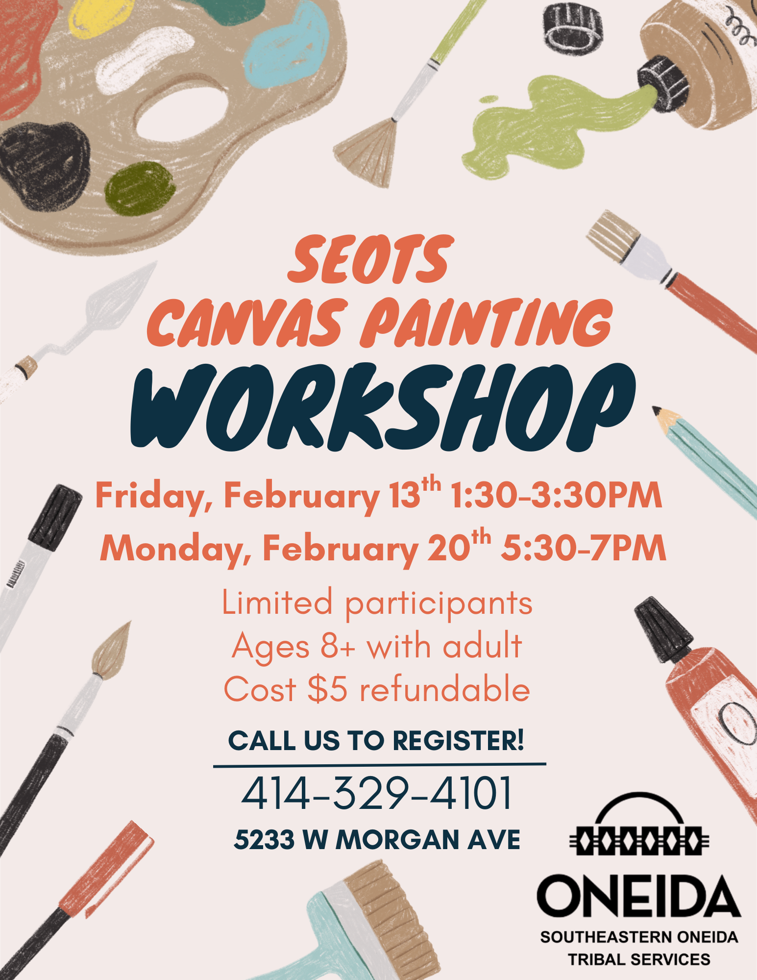 February 13th 1:30-3:30pm, valentine’s day themed. February 20th 5:30-7pm, winter themed. |