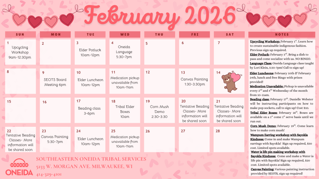 SEOTS is a satellite office serving Oneida Nation tribal members living in southeastern Wisconsin. The priority of improving wellness outcomes for the community is accomplished through community education and connection to quality programs and services.