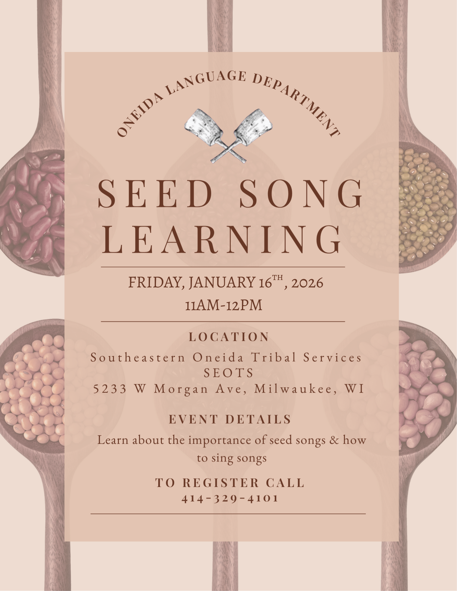 | Song Teachings | Join us for song teachings provided by the Oneida Nation Language Department! | January 16th 11am-12pm | Click here to view flyer |