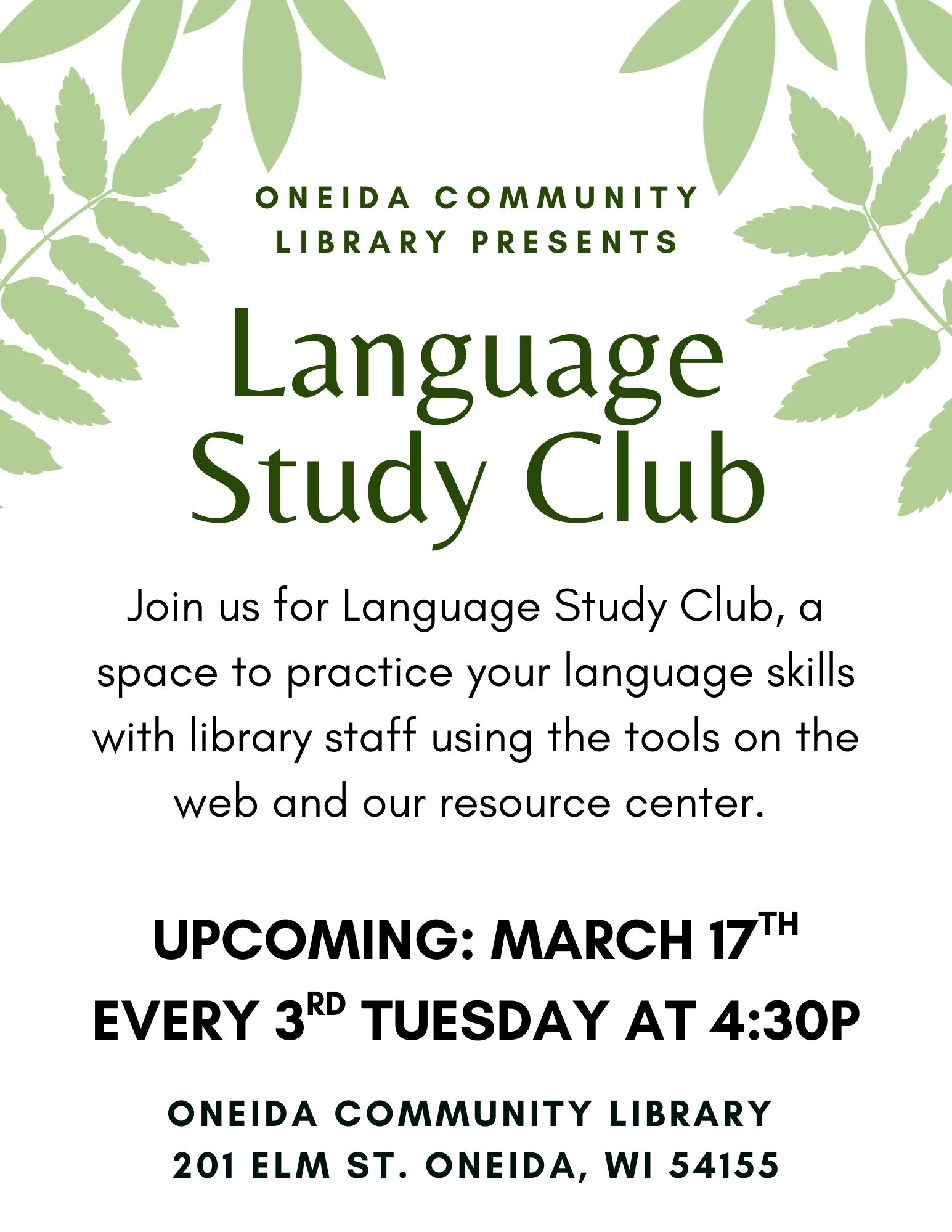 View our Language Study Club Flyer (JPG File)to