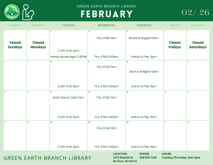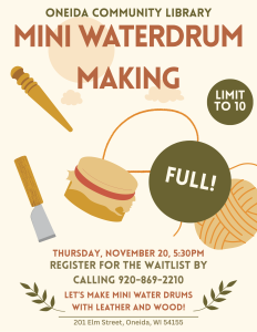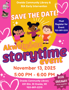 Oneida Community Library: 920-869-1299 Green Earth Branch Library: 920-833-9782