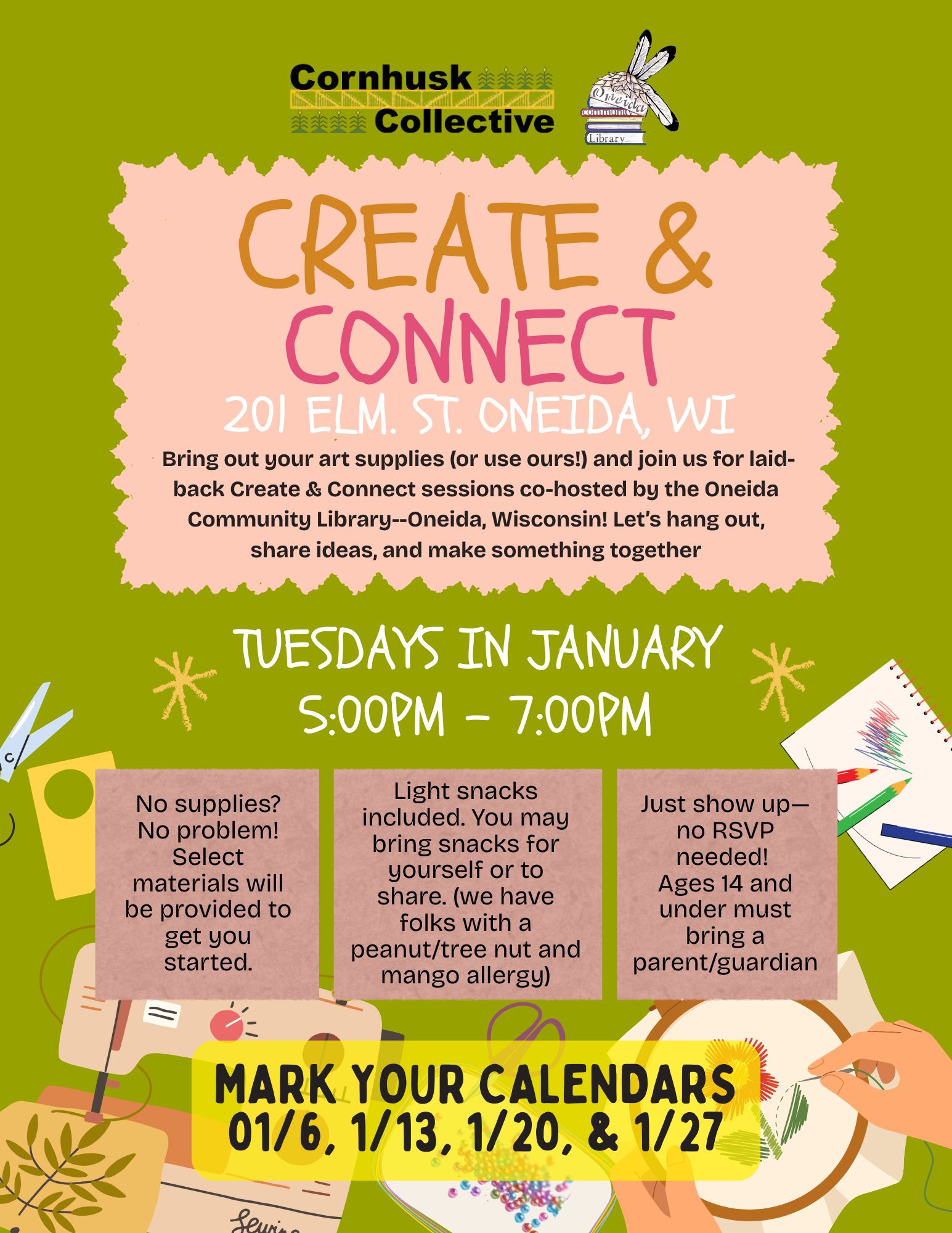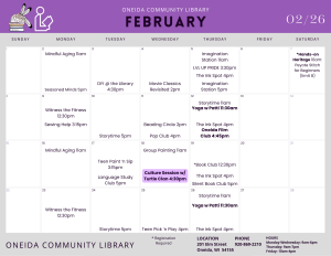 Oneida Community Library: 920-869-2210Green Earth Branch Library: 920-833-7226