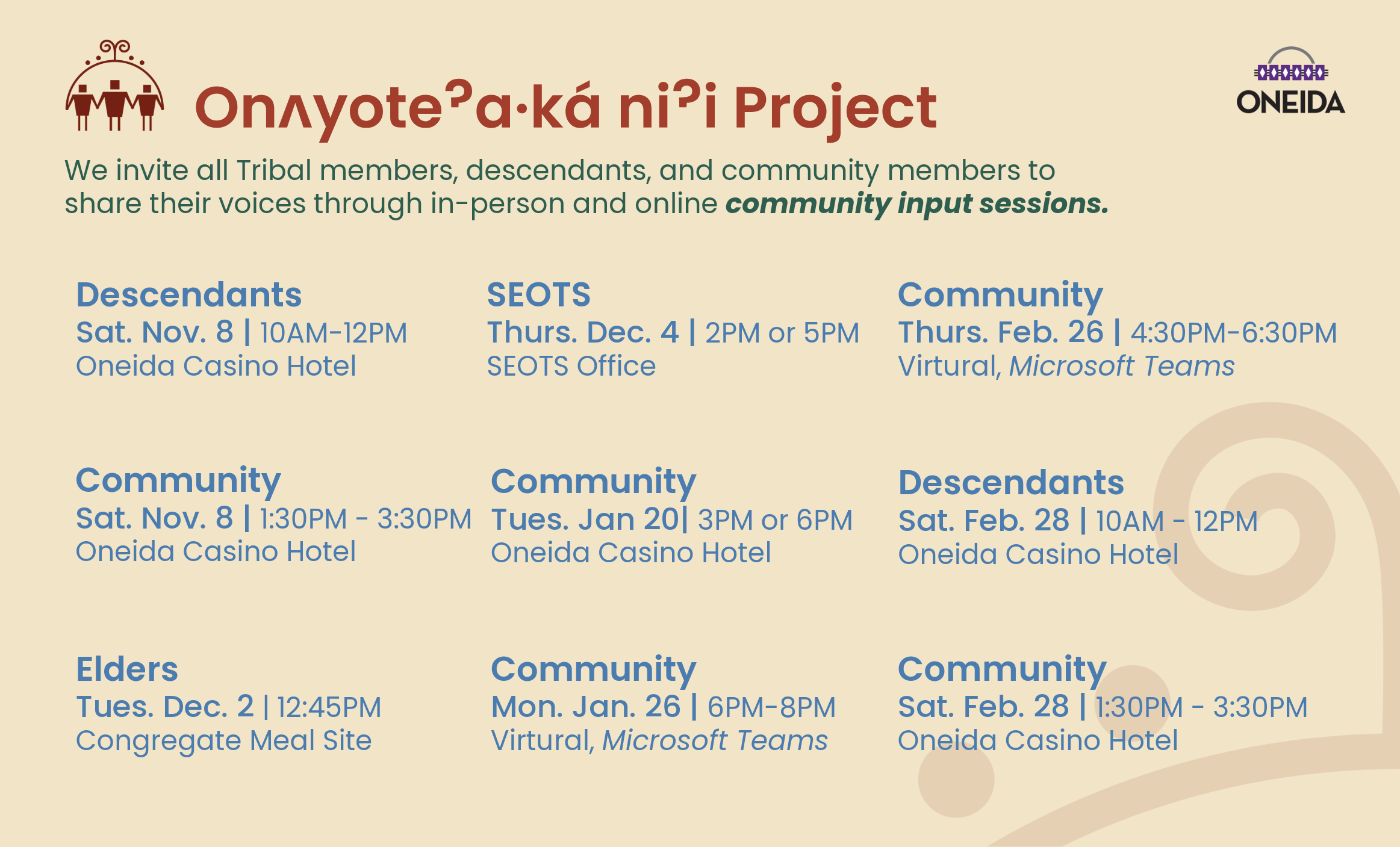 Whether in-person or virtual, these events will offer space for learning, sharing, and contributing to the future of the Oneida Nation.