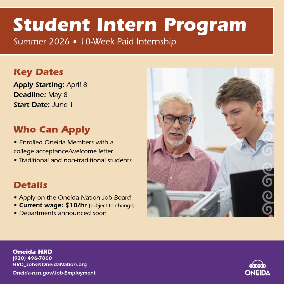Oneida Nation is an equal opportunity employer that gives preference in employment to Oneida Nation Members and Native Americans.