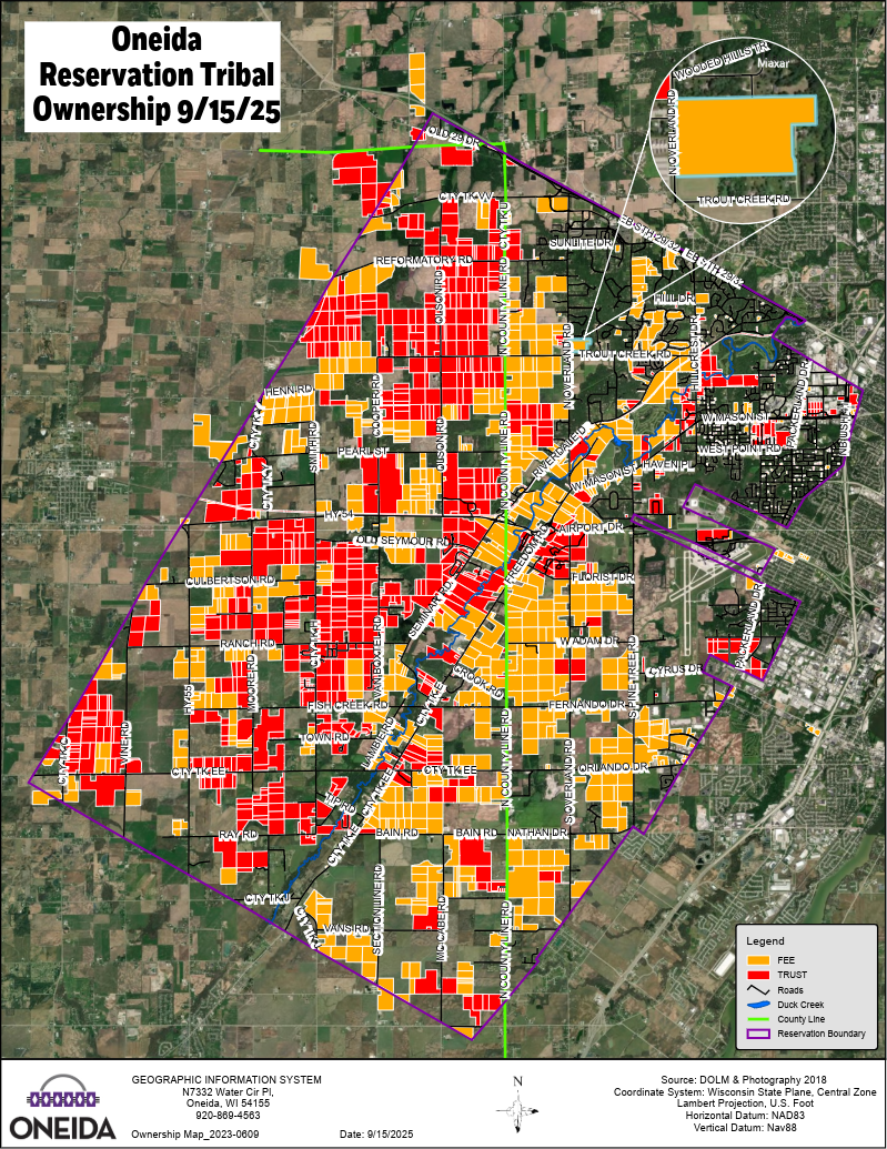 Oneida Reservation Tribal Ownership Map 9/15/2025